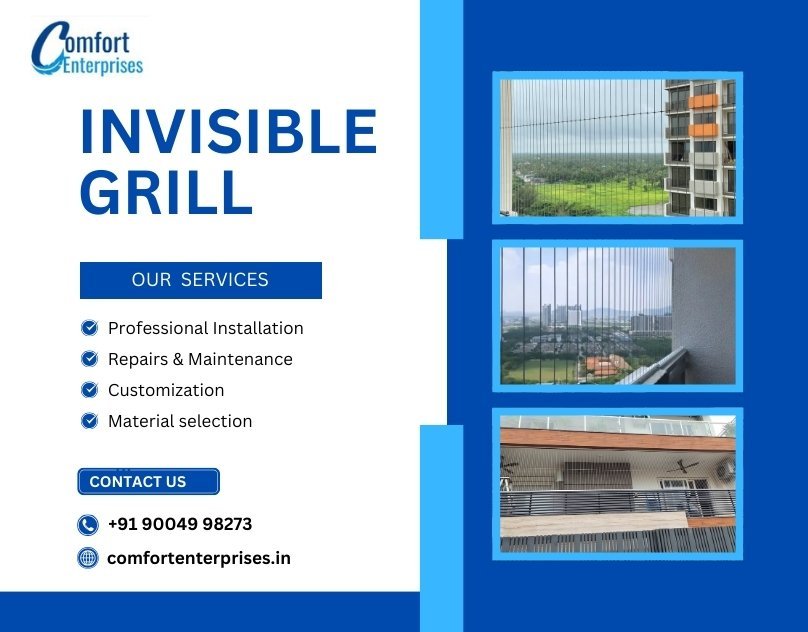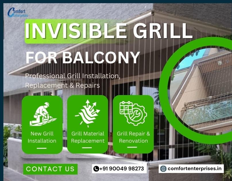 Comfort Enterprises is a trusted provider of Invisible Grills and Ceiling Cloth Hangers in Mumbai, Navi Mumbai, and Thane. We offer premium invisible grill solutions for balconies, windows, and high-rise homes, ensuring maximum safety without compromising your view. Our invisible safety grills for balconies are durable, child-safe, rust-proof, and perfect for modern apartments. We also specialize in ceiling hangers and ceiling cloth drying systems in Mumbai, including balcony cloth hangers, pulley-operated ceiling hangers, and space-saving cloth drying hangers for homes, flats, and residential complexes. Each product is designed for long-lasting performance, convenience, and efficient space utilization.